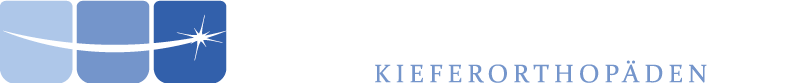 Le symbole, formé de trois carrés bleus dégradés évoquant des dents, exprime à la fois la structure et la progression du traitement orthodontique. La courbe blanche qui les relie suggère un sourire harmonieux, tandis que l’éclat final traduit la précision, la qualité du résultat et la maîtrise technologique.